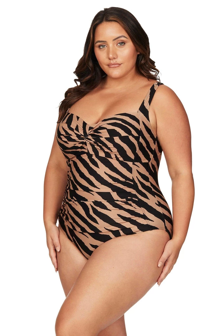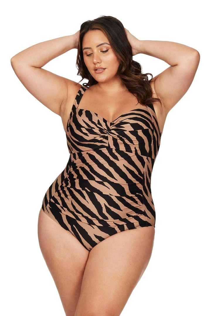 Artesands Fits Your Curves. Be sculptured by our Botticelli one piece that is designed to sculpt your curves. Our Botticelli styles offer wire free comfort and support. This style has a loop front twist detail with multifit cup support that fits a C Cup, D cup , and DD cup, the sewn in cup has a powermesh surrounding so it can fit a larger or smaller cup. Botticelli has good moderate bottom coverage with full body 360 degree powermesh and front body ruching for body sculpting confidence.