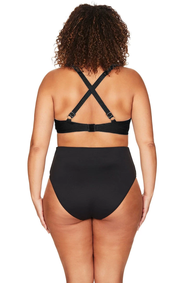Artesands fits your curves. Show off in Artesands Giotto captivating bikini top, the ultimate curve enhancer. This curve fit and plus size bikini top has underwire support to fit a D cup to DD cup, and secured foam cups for body sculpting confidence. Our Artesands Giotto bikini swimsuit has a contrast paneling detail on the bust. Giotto curve fit and plus size bikini top has powermesh back wings to support the upper back and follow through to the strong back clip.
