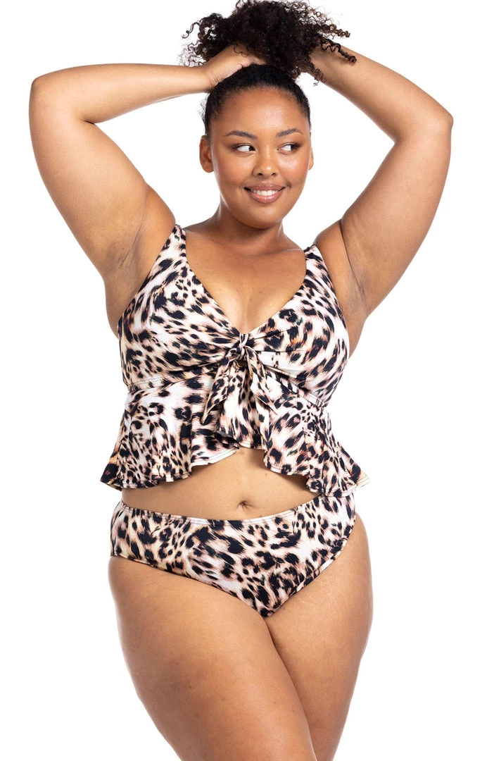 Artesands fits your curves. Our Chagall curve fit and plus size soft cup bikini top has been designed for a smaller cup size and looks amazing on an A cup, B cup, C cup and D cup, this has removable multifit cups. Our Chagall midriff bikini top we say has fashion and form with a faux knot tie front, a small peephole and a cute flounce with just a little bit more coverage. Chagall has wide adjustable straps for extra comfort and support and a back clip is for strength.