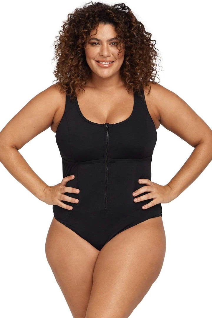 Our Fuseli silhouette is fashionable and functional, it is a zip front beauty. Not only does this swimsuit look stylish on, the absolute most stylish part of this swimsuit is how easy it is to get into and get out of. Our zip through fuseli swimsuit shape is designed to fit a multitude of women and has multifit soft foam cups to fit a C – DD cup, a front lockable zip and side panels for body shaping confidence.