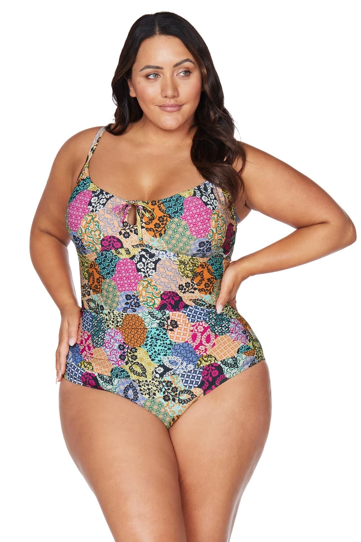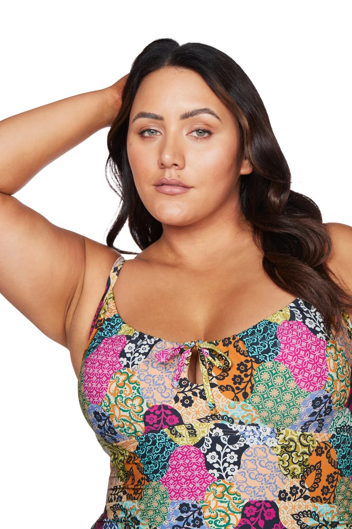- Drawstring Bust Detail – Our Degas curve fit and plus size swimsuit has a drawstring feature on the bust that allows you to tailor your perfect fit! Simply tie the drawstring tighter for a smaller bust