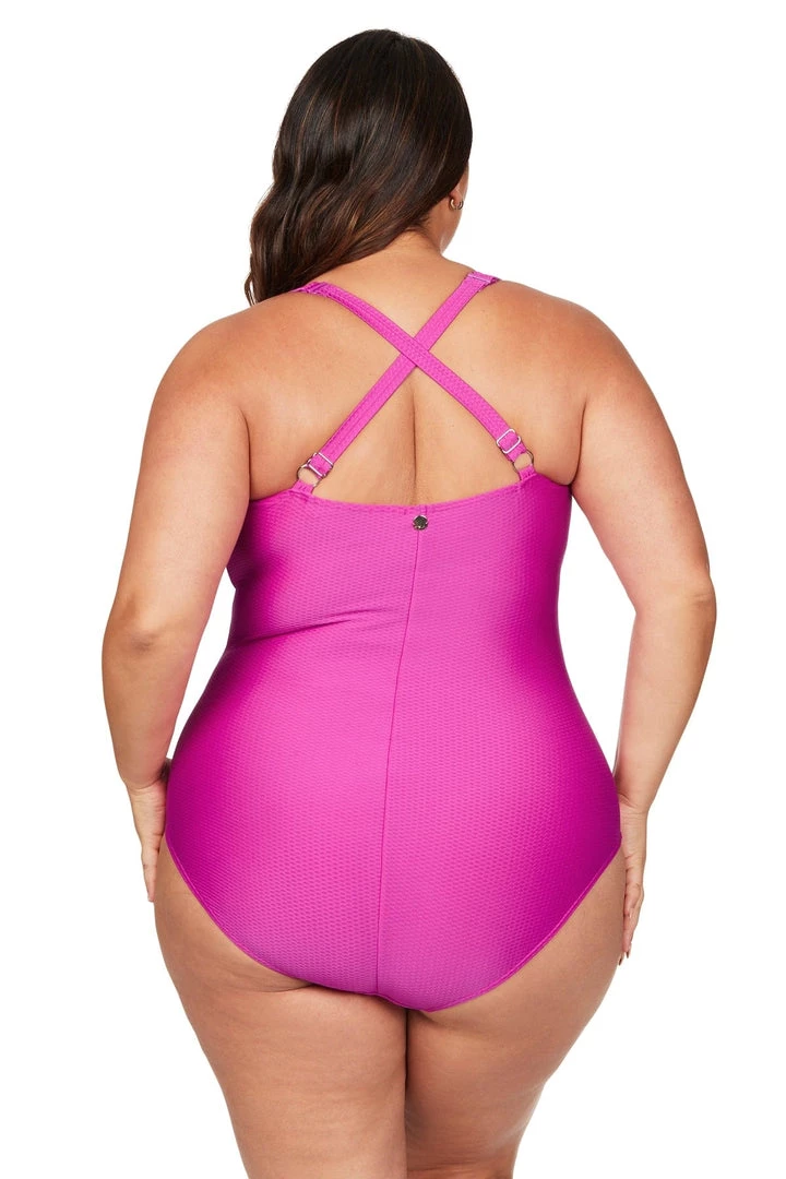 Artesands Fits Your Curves. Raphael is our full support one piece style with all the bells and whistles. This curve fit and plus size one piece swimsuit has underwire support to fit a E cup to F cup. This swimsuit has an internal bra fitting, and full body 360 degree powermesh for body sculpting confidence. Raphael is our most modest shape with full coverage and a lower leg line.